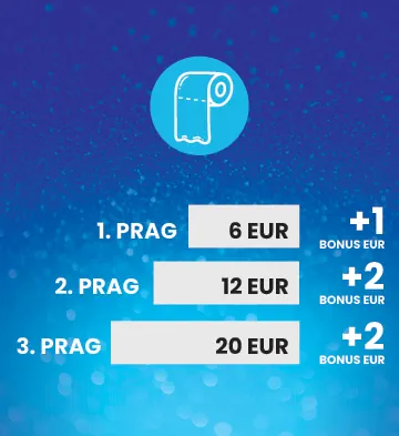 Nakon potrošenih 6 eura u izazovu TOALETNI PAPIRI, odmah dobijaš 1 BONUS euro.
